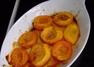 Til den daglige morgenfrugt er jeg mest til noget frisk, men forleden havde jeg købte nogle abrikoser, der ikke var modne nok. Så er fornøjelsen ikke stor. De kom i stedet i ovnen i et fad, halverede, med skind på, og med den skårede side opad. Drysset med ca. 1 tsk. rørsukker per hele abrikos og med en sjat vand i bunden, så sukkeret ikke brænder fast. Ca. 20 minutter ved 180°, indtil abrikoserne bliver bløde, men ikke helt udsmattede.Faktisk er det godt at frugten er lidt umoden, når den skal bages. Den højere syreindhold får frugtsmagen tydeligere frem. Havde disse været modne, havde de fået lidt citronsaft på inden bagning. Spiste dem et par morgener, de var suveræne med græsk yoghurt. De er også gode til desserter.